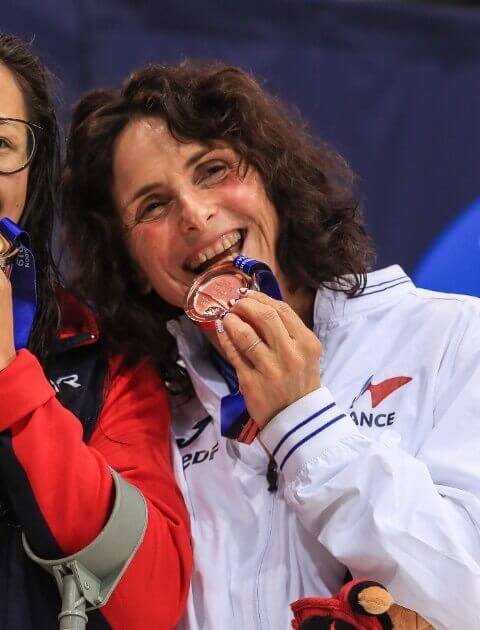 Originaire d’Angers, Claire met fin à sa carrière sportive en 1988 et devient maman de 3 enfants. Diagnostiquée de la maladie de Charcot-Marie-Tooth en 2008, elle décide de replonger dans les bassins pour entretenir ses muscles et ralentir l’évolution de la maladie. Elle s’entraine 2 fois par jour sous la houlette de son frère à Angers, sa ville natale et se concentre sur ses ambitions pour 2024.